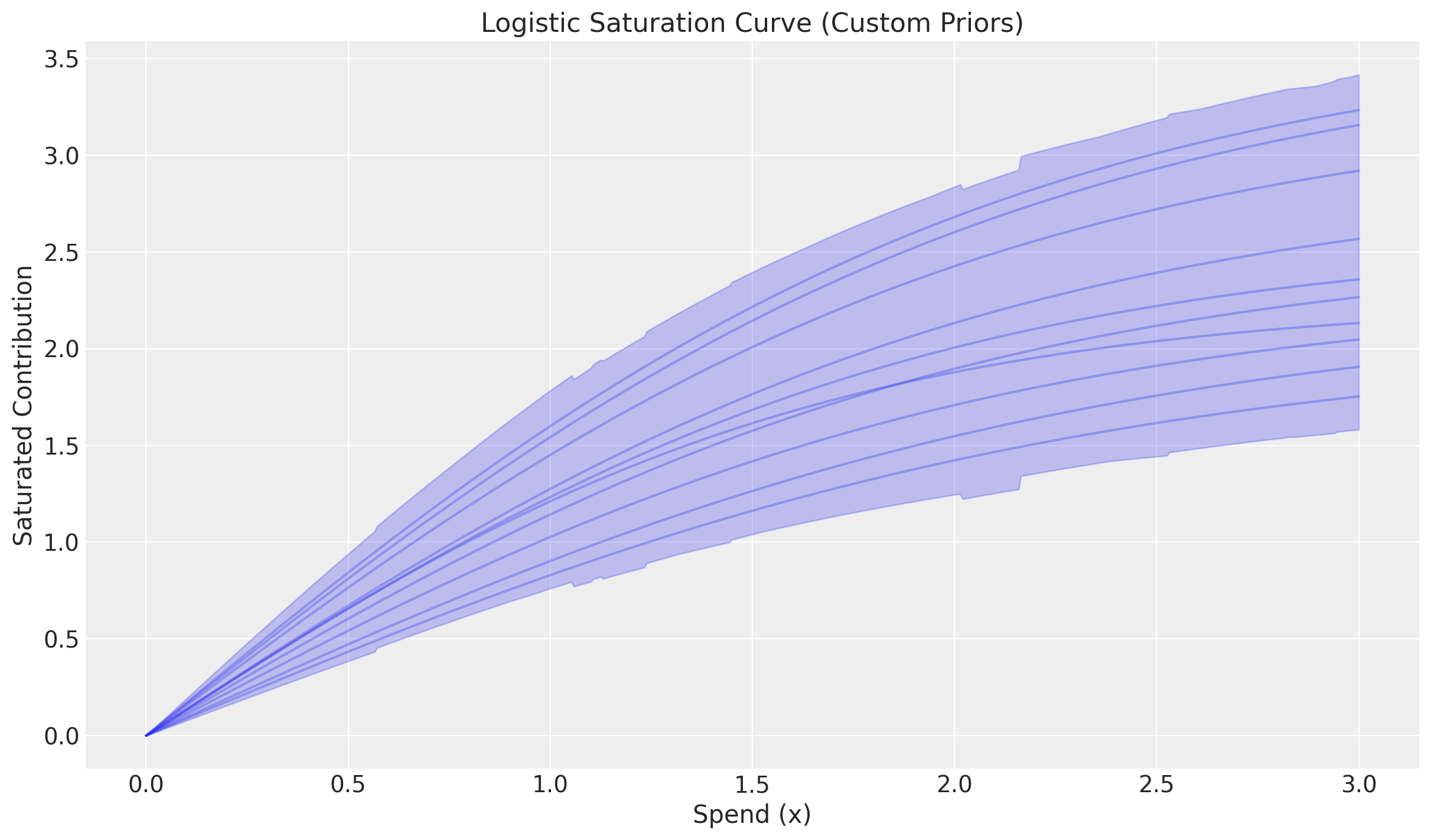 title="Logistic Saturation Curve (Custom Priors)",