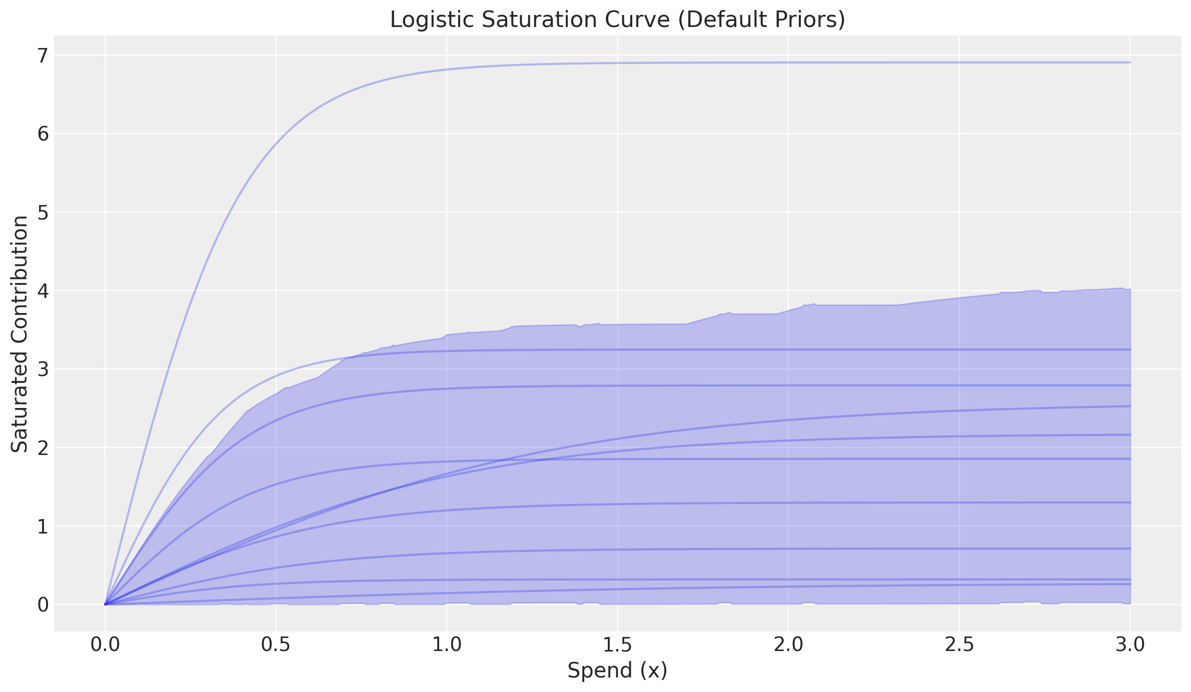 title="Logistic Saturation Curve (Default Priors)",